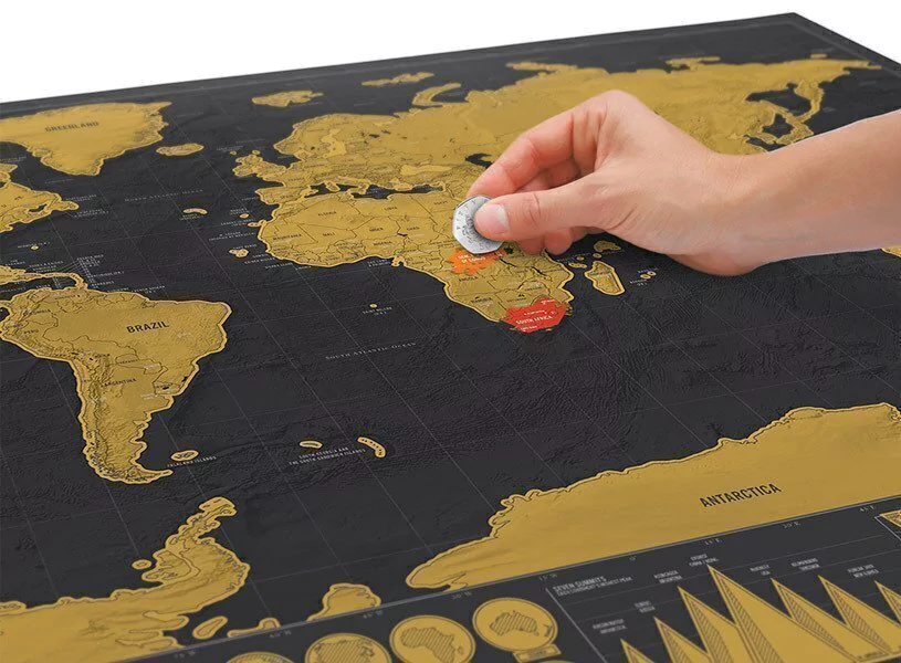 También podés pegarlo o enmarcarlo en la pared e ir marcando los países que conociste o que quisieras conocer. Excelente regalo para viajeros, niños y amantes de la geografía. Se raspa y debajo aparecen los diferentes colores.